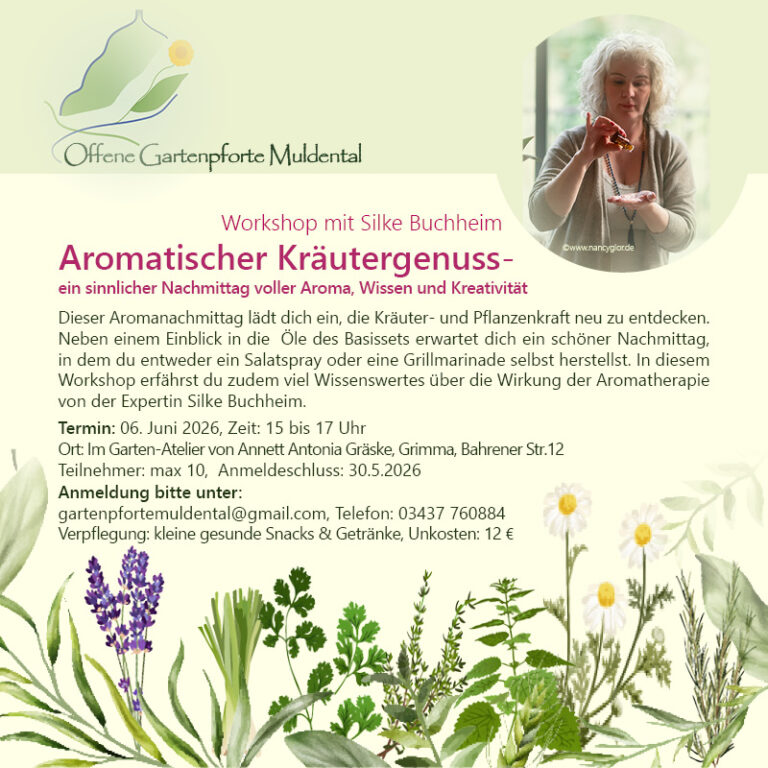 Das Muldental ist eine Region, welche allein schon durch seine reizvolle Einbettung in die wunderschöne Landschaft mit dem Flusslauf der Mulde einzigartig und beruhigend wirkt. Und doch birgt es darüber hinaus viele kleine Paradiese – die Privatgärten. Erleben Sie eine kleine Gartenreise, einen Rundgang in unsere privaten und öffentlichen Gärten und Parks. Dabei wünschen wir Ihnen viele Anregungen und einen angenehmen Aufenthalt! Ihre Initiative Offene Gartenpforte Muldental